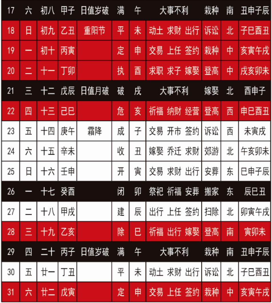 01-142026年吉凶日历:11月吉祥