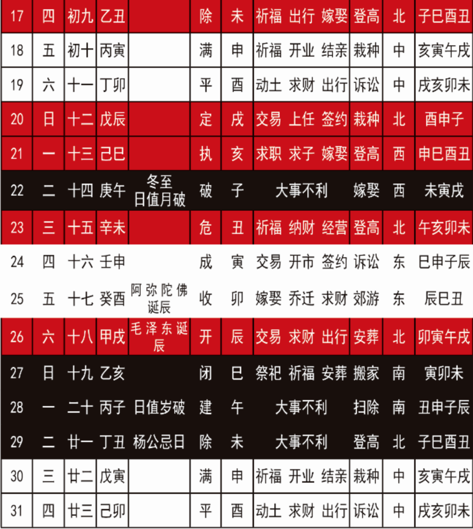 01-142026年吉凶日历:11月吉祥