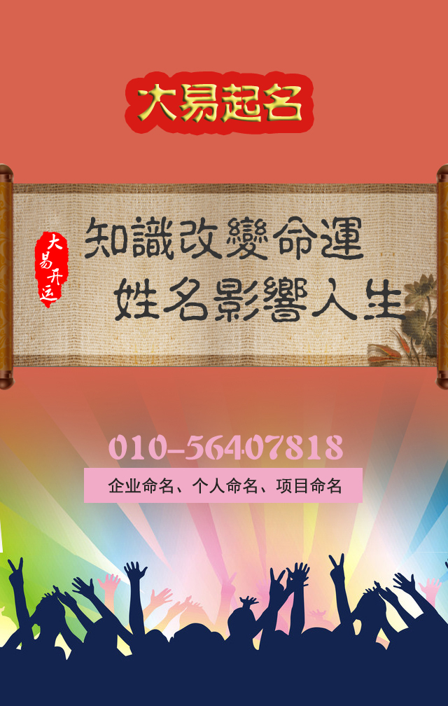 二、取名时,把选用的字与姓组合并加以推敲,边排列边念出来,边念边比较,使字的选择与声调的组合有机地结合起来,从而使形美、音美、义美三者兼顾。现举出一些字音响亮悦耳的古今人物的名字,供读者仔细咀嚼:毛享,朱熹,班固,周瑜等。另外如李莲玲、张壮竹等,韵母相同,字音便很相近,读起来也不响亮,也会拗口。